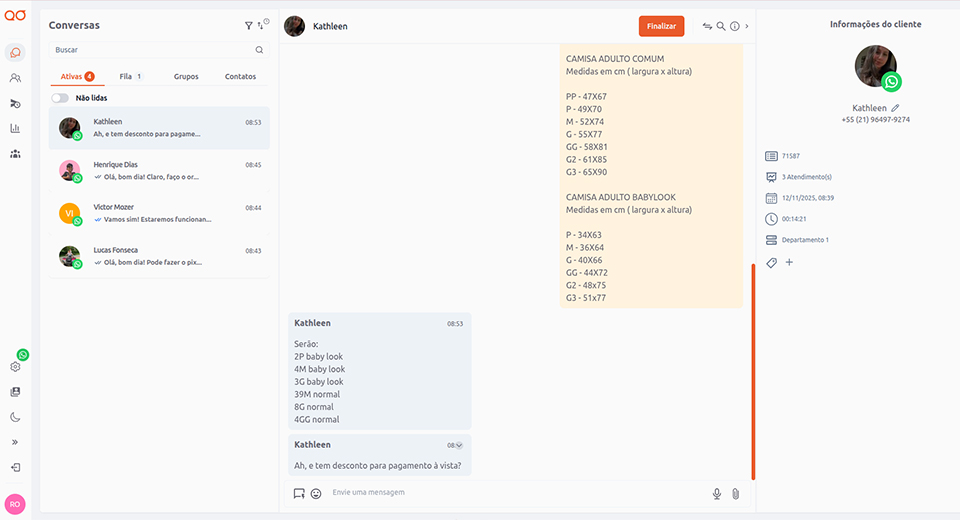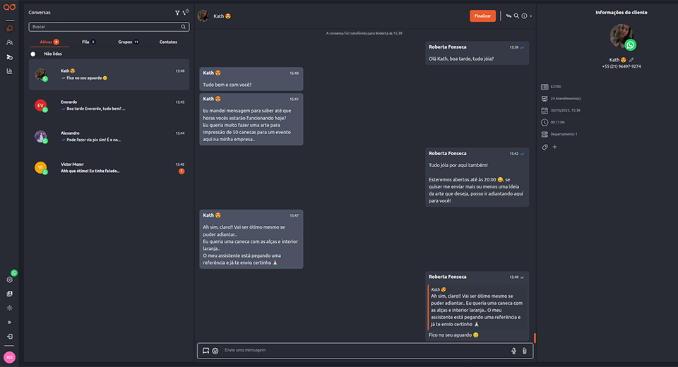 Direcione os clientes automaticamente para o agente ou departamento correto sem que eles precisem repetir informações. Um fluxo de atendimento organizado elimina o atrito e garante a agilidade que o mercado exige.